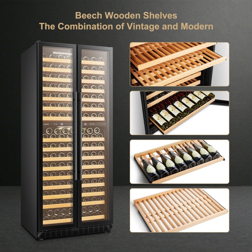 Slide-out Shelves: The wine cooler comes with 16 sturdy beech wooden shelves, each shelf has slide rails, making it easy to access and place bottles.